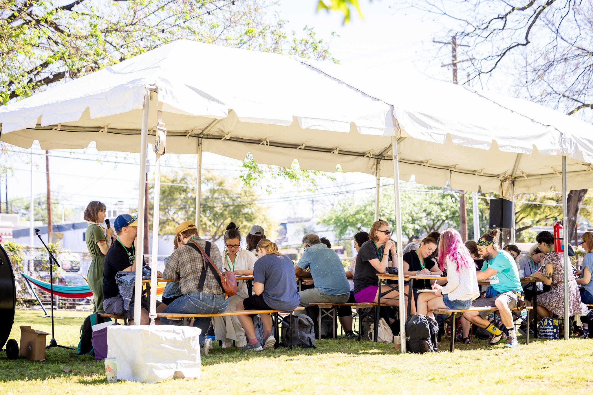 We had more than 40 breakout sessions over the weekend, featuring a bunch of topics you wouldn’t expect at a typical conference. One of my favorites was this creative writing session on the lawn, where attendees worked on short writing projects together in the sunshine.